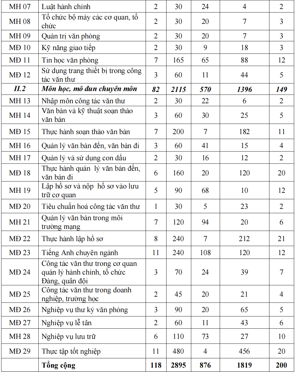 Số môn học: 29 môn học, mô đun